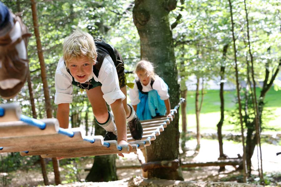 Der Spielplatz mit Rutsche, Schaukeln und Klettergerüst lädt zum Toben mit Freunden ein. Am angelegten Wildbach mit Wassertretbecken kommt der Spaß für Groß und Klein nicht zu kurz. Das Kneippen im kalten Wasser sorgt für die Anregung des Kreislaufs und die Durchblutung wird gefördert. Außerdem wirst du an diesem Abend sicher gut einschlafen. So können die Eltern etwas für ihre Gesundheit tun und die Kinder können sich nebenan im Kletterwald mit 15 Kletterstationen austoben. Sich wie Tarzan von Baum zu Baum schwingen oder die eigene Balance auf der Slackline testen.