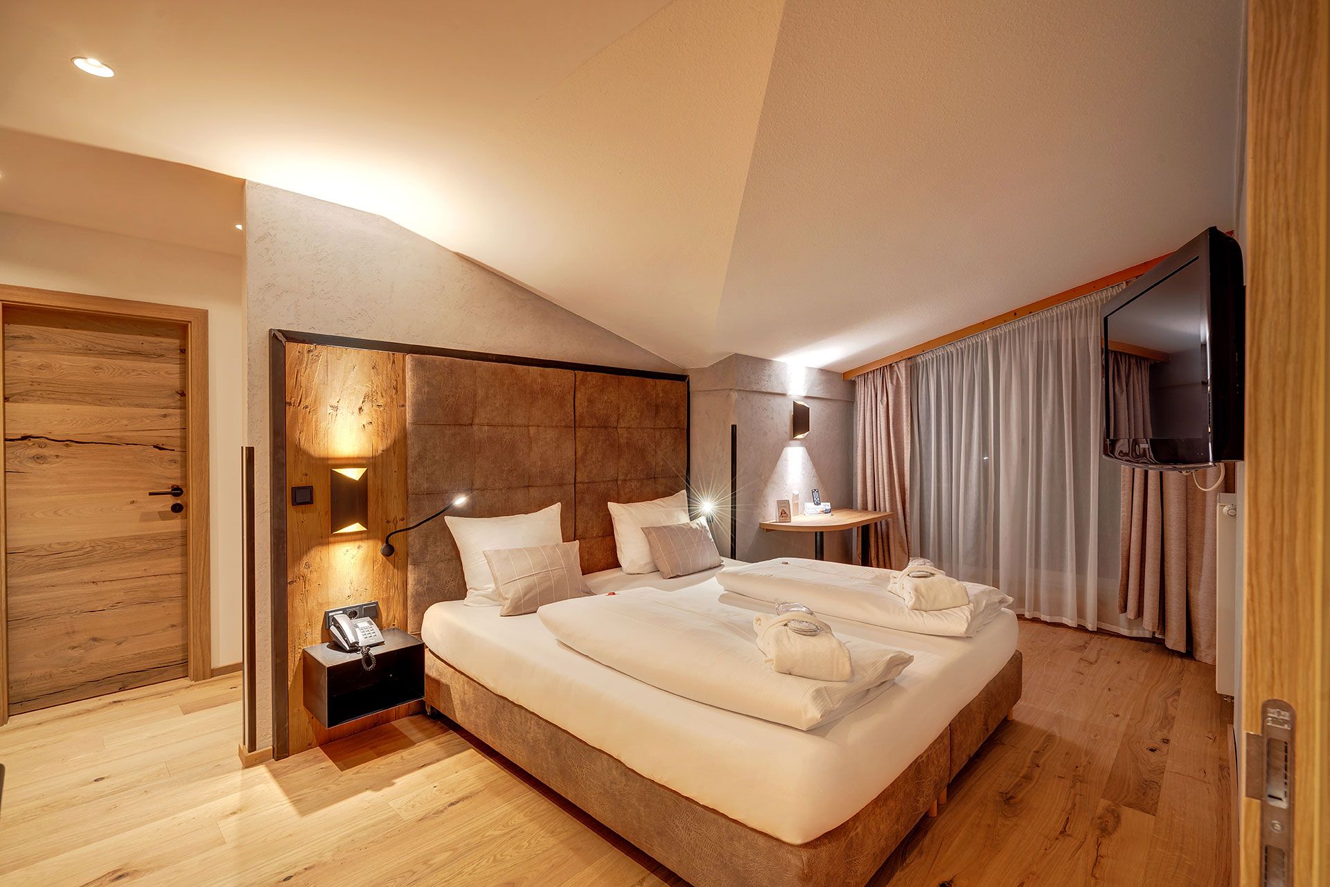 Vermutlich wirst du dich während deines Aufenthaltes nicht allzu lange im Zimmer aufhalten. Das ist mehr als verständlich, wenn man bedenkt wie viele Freizeitangebote im Oberjoch FAMILUX Resort auf dich warten. Ein bisschen schade ist es aber, weil wir die Hotelzimmer so bequem ausgestattet und großzügig eingerichtet haben.